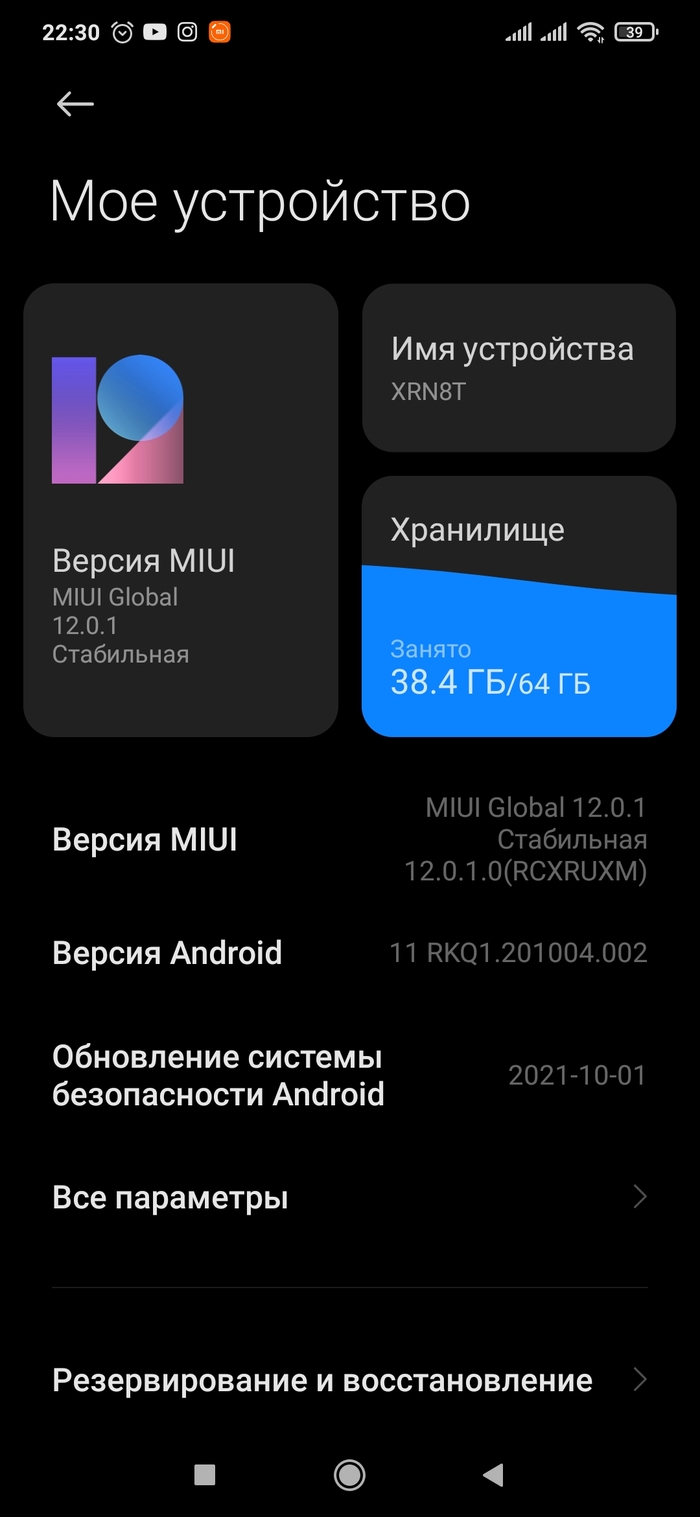 И так дано: redmi note 8t 4 ram 64 rom, android 11 miui 12.01Патч безопасности за октябрь 2021