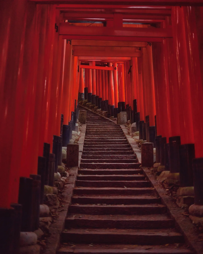 Тысячи красных арок, ведущих на гору. Невероятное место. Хоть и количество туристов сильно напрягло. Фото сделаны в 7 утра, ждать момента, когда людей не будет в кадре приходилось постоянно. Когда в 10 мы уже уходили, толпа туристов была просто жуткая и весь путь был наполнен людьми
