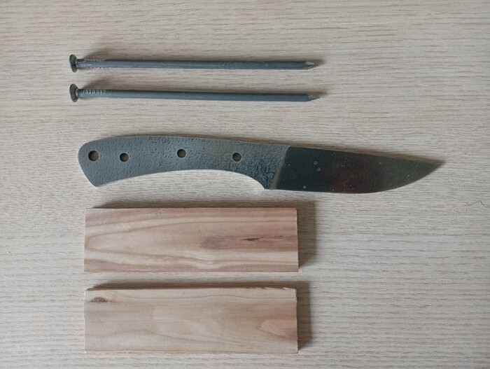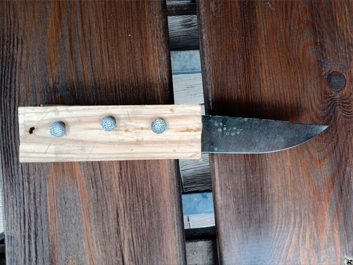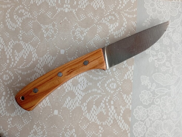 Вполне отдаю себе отчет, что и дерево не то, и нестабилизированное, и может испортиться, потемнеть, отсыреть, лопнуть, пины-гвозди проржавеют, но сейчас это меня совершенно не беспокоит. Скоро схожу в лес по грибы с собственным ножом. Испортится - теперь знаю как починить.