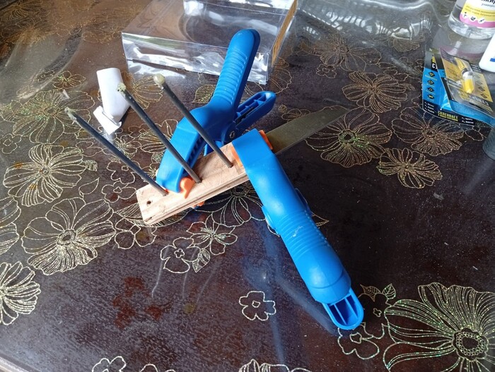 ... потом, ножовкой по металлу отпилив лишнюю длину гвоздей, стало уже веселее.