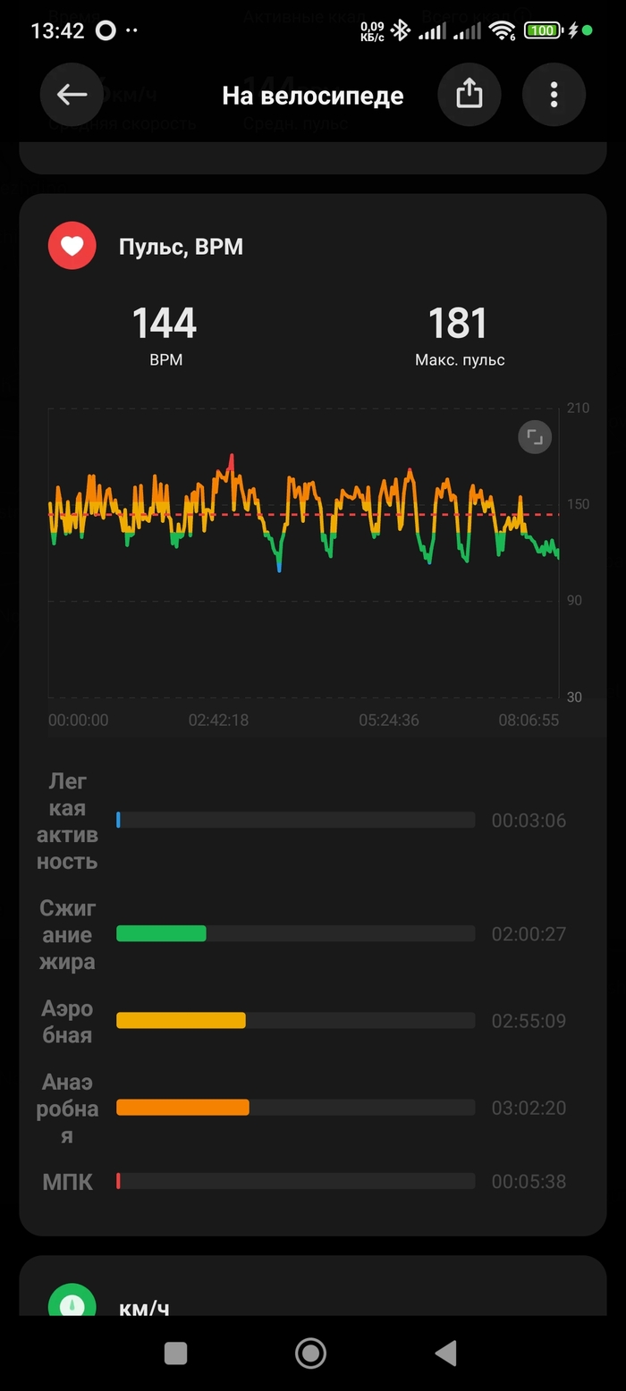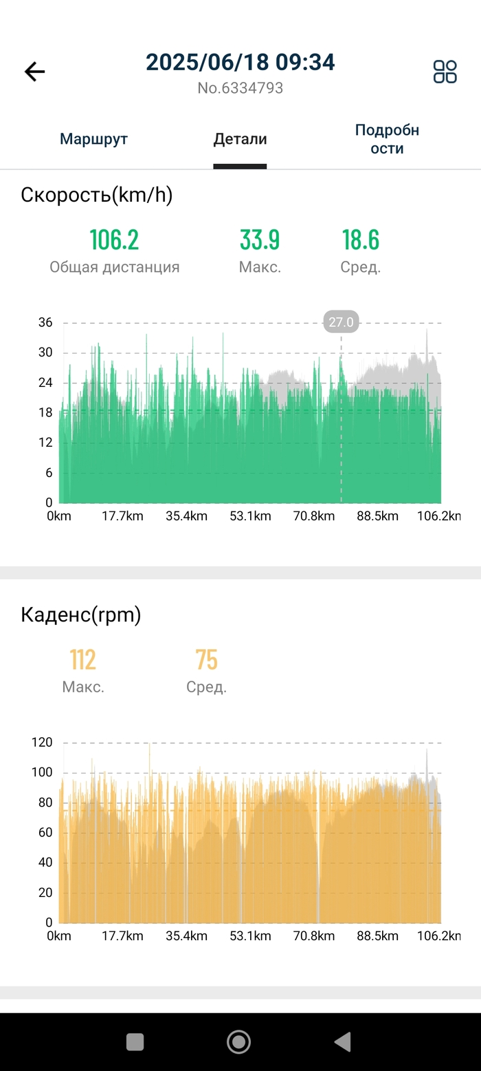 Статистическая информация с двух разных устройств, велокомпа и браслета.