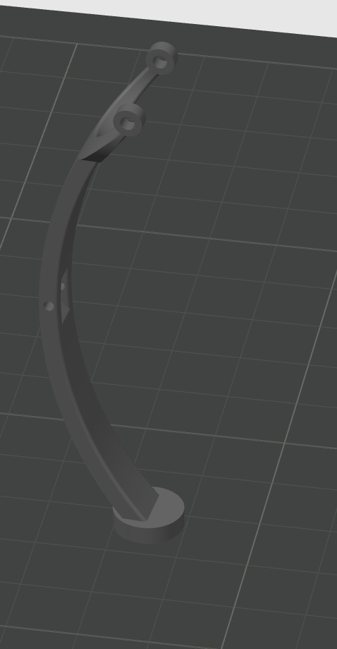 Коромысло тоже имеет не простую форму для печати. В идеале, для прочности, следует положить на бок. Но тогда нужно делать много поддержек. В целом со свариваемостью у моего ASA не так плохо. Но такое изделие выдержит уже меньшие нагрузки. Тем не менее, попытаемся напечатать так, добавляем поддержки и вперёд.