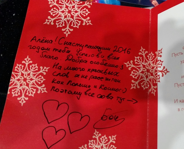 Прямо перед новым годом получила посылку из Череповца :) большое спасибо! Не разобрала подпись, пикабушник, если ты увидишь этот пост - огромное тебе спасибо! :) невероятно приятно :) шоколадка даже не поломалась, кстати :)