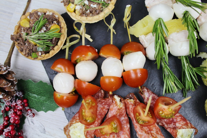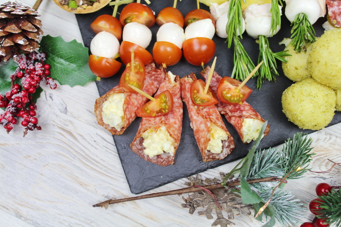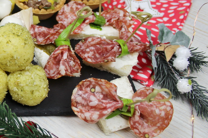 Канапе с селедкой и вяленым томатом.