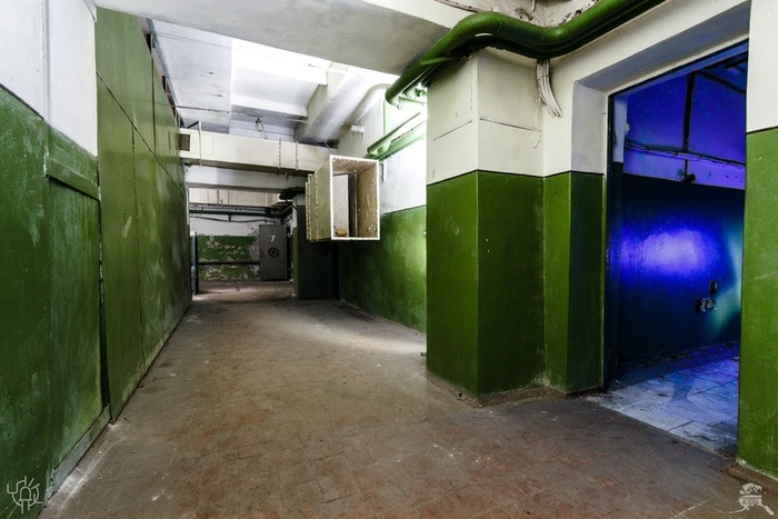 Один из самых интересных конструктивных ракурсов сооружения, ведь одновременно мы можем видеть длинный коридор в зал для укрываемых, отсек пункта управления с многочисленными комнатами штабов, зал оперативного дежурного.