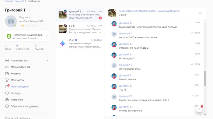 Перед вами последовательное давление на жалость с выторговыванием компа (заметте всего то за 5 тыщ рублей с монитором, мышью, клавой....) и в конце смех когда я соглашаюсь на все его выдумки...