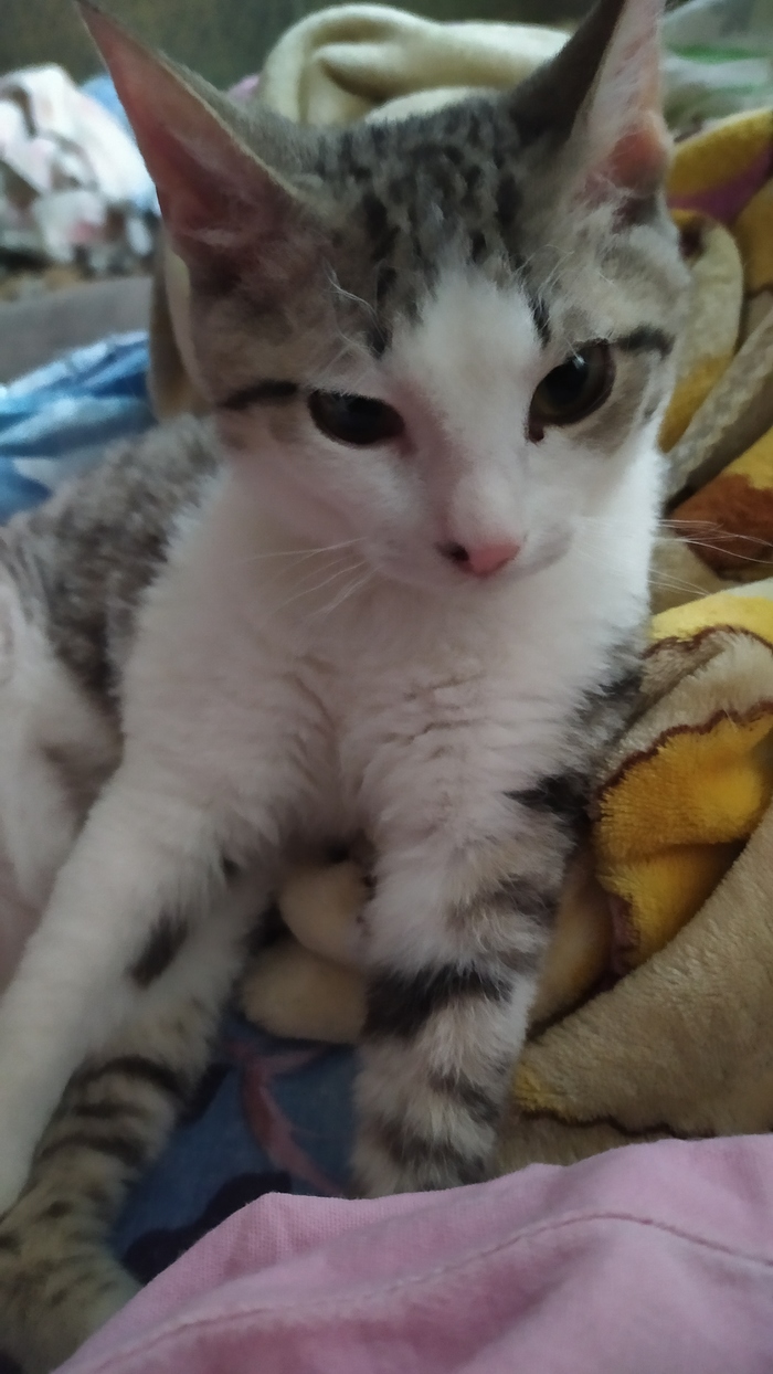 Кошка ласковая, ест все, игривая и очень милая. Правда немного тупенькая... Но есть у нее одна огромная проблема.
