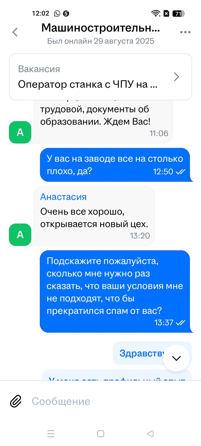 Вместо "Алё" он сразу сказал "ну что, когда ждать Вас?". Я не понял, и он сразу пояснил "Вы же сказали, что в ЗИК поедете, я так и понял, что перезвоните". Обговорили даты моего выхода, какие документы скинуть для трудоустройства и я спросил насчет дополнительных смен, на что получил ответ "такая возможность есть, но мы такое не поддерживаем. Оплачиваем конечно в двойном размере, но поймите, уставший сотрудник менее продуктивен и быстро перегорает. Если остро встает вопрос в деньгах и прямо очень сильно нужны, всегда можно договориться. Всякое в жизни случается, в зависимости от суммы, нам проще или просто подарить эти деньги, ну или хоть какую-то часть, что бы не так тяжко было". Чуете разницу, между святая всех святых "Заводом имени Калинина👆🤌" и каким-то частником. При этом я хочу отметить, что у частника ко мне обращались на "Вы", на заводе исключительно на "ты". Мне конечно это не принципиально совсем, но как мне кажется показывает отношение к потенциальному сотруднику.