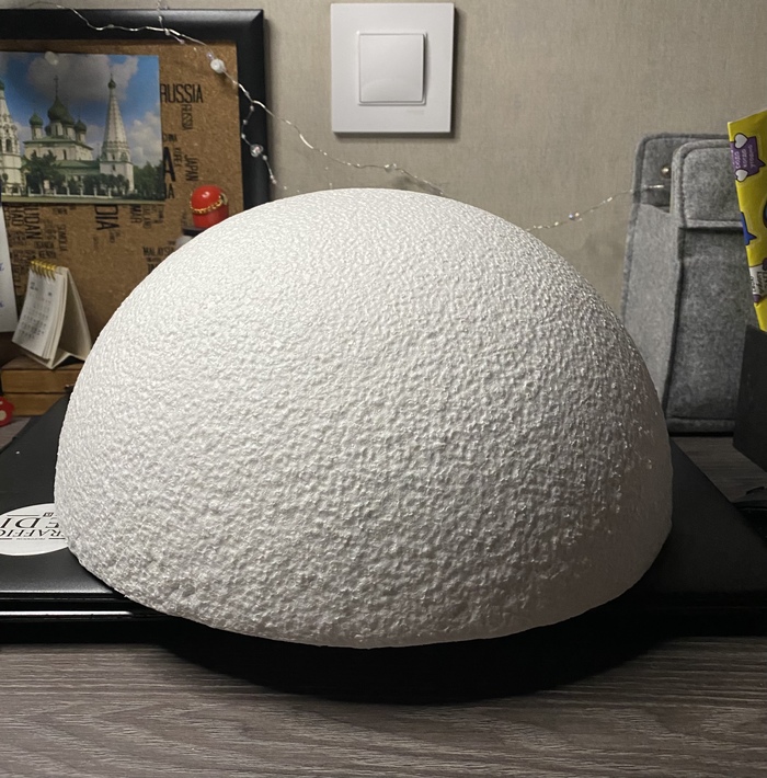 Обклеивал по классике — вечерами в 5-6 итераций, сделал крепкий каркас по итогу, полусферы склеил так же — клеем ПВА