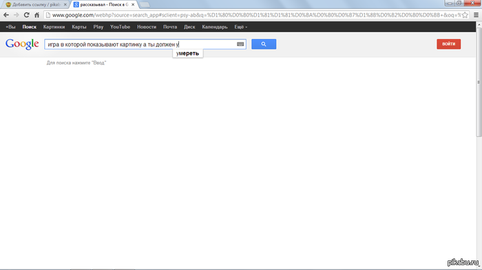 4 GeFF 12 лет назад Ты должен умереть Хотел в Google найти игру,где по картинке надо определить место на Google Maps,но не тут то было. [моё] Моё Google Смерть