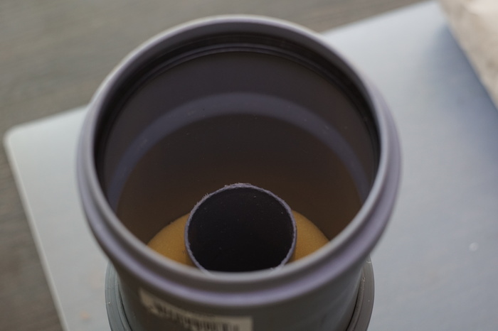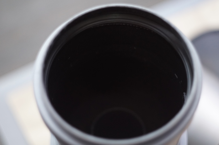 Далее стягиваем заднюю половину с объектива, сидит довольно плотно, ни в коем случае не крутите половинки- сломаете механизм диафрагмы.