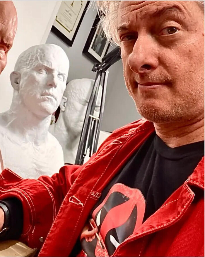 Гример Билл Корсо поделился кадром со съёмок "Дэдпула 3", на котором он находится на фоне нескольких скульптур титульного героя.
