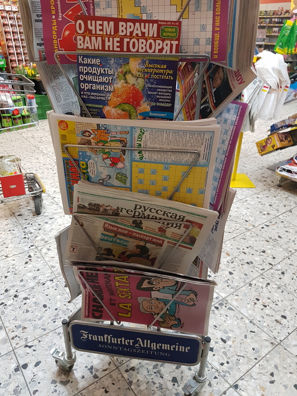 Ну и конечно стойка с газетами и журналами. С другой стороны немецкая пресса. В основном газетенки вроде флирта и сканвордов, но с третьей стороны была и нормальная пресса.