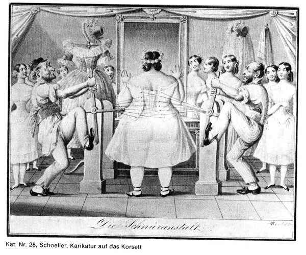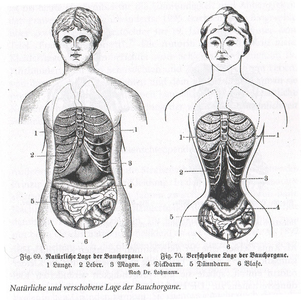 Так же до нас дошли записи немецкого врача Карла Шпенера. Он измерил обхват талии одной из своих пациенток после 12 часов рабочего дня. Поверх платья обхват составил 60,2 см, под корсетом 58, а после того, как она сняла его, то все 61 см. На следующее утро после сна талия была уже 63 см.