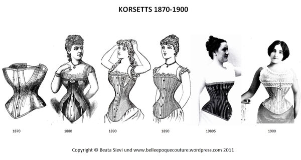 Корсет принадлежал к основным элементам женской одежды на протяжении многих лет. Сначала на тело надевалась рубашка, затем корсет и только потом платье. В зависимости от моды менялся покрой и используемая ткань. Также постепенно менялся и основной материал - поначалу это был довольно дорогой китовый ус, но в конце девятнадцатого века все чаще прибегали к стальным конструкциям.