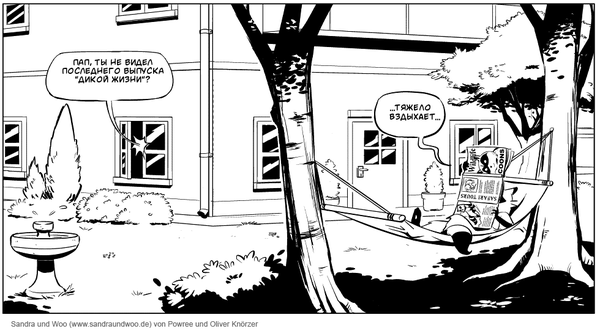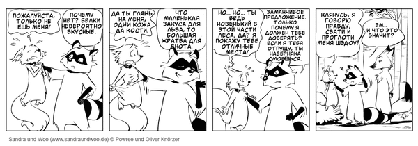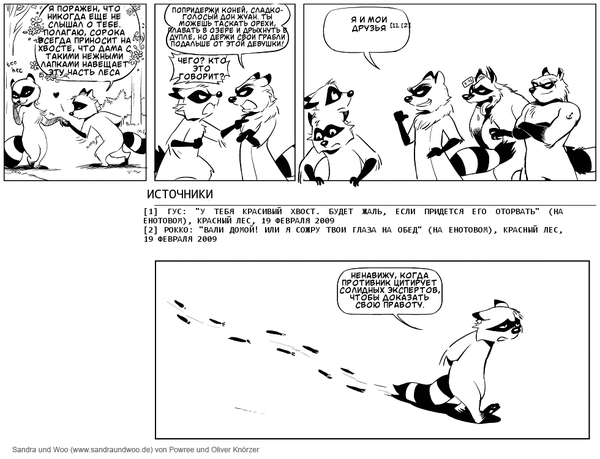 Недавно нашла и перевела забавный комикс про енота Ву и его хозяйку Сандру.