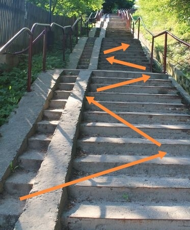 Вот мой совет всем. Как ни странно многие люди прожившие всю жизнь в городах с такими лестницами не пользуются таким способом (и не догадываются).