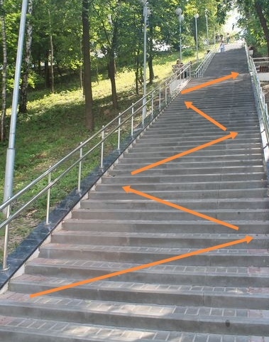 Совет прост - не идите прямо вверх! Сделайте ваш подъем немного извилистым, от одной стороны лестницы в другую. Вам станет значительно легче.