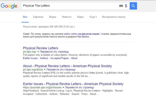 На первый взгляд статья кажется интересной и внушающей доверия. Как источник указывают газету The Independent, которая в свою очередь ссылается на издание Physical The Letters. Также нам указывают соавторов Хокинга Эндрю Строминджера и Малькома Перри. Даные все есть, что бы можно было найти оригинальную статью. Что нас останавливает? Интернет есть, да и гугл переводчик с радостью готов нам помочь если встретим непонятные слова .Так что в путь в далёкую Британию за знаниями. Ctrl + c «Physical The Letters» Ctrl + v «Physical The Letters» и вот гугл трубит ,что он всё нашёл за какую-то вечность в 0.40 секунд.