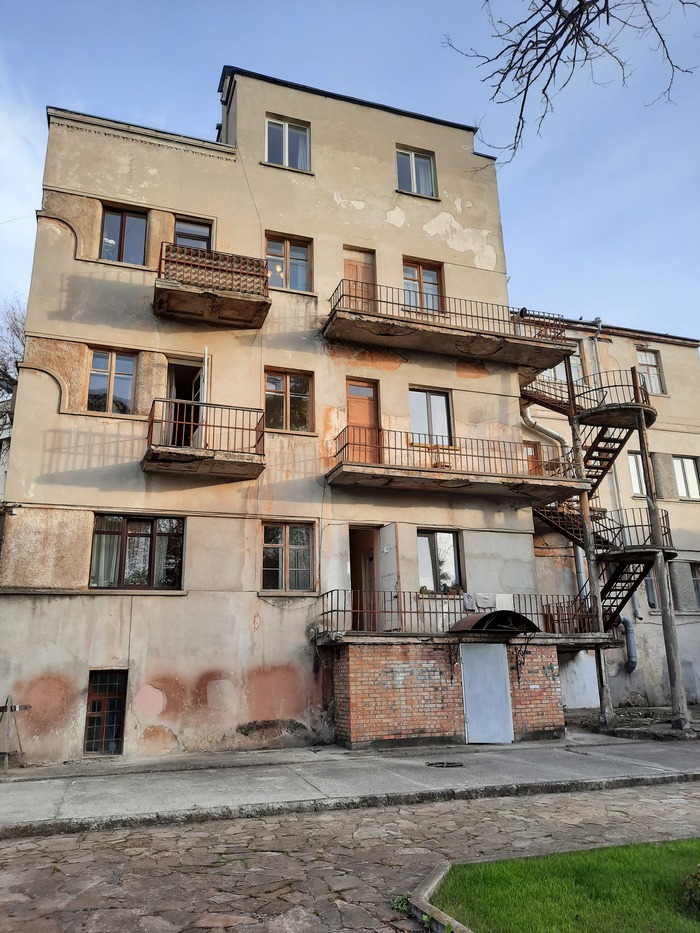Глубокие трещины стен, обрушающиеся балконы, сгнившие начисто перила и пожарная лестница. Но самое интересное, на верхнем этаже.