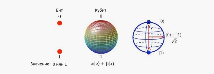 Кубит (qubit, от quantum bit) — это бит, только квантовый. Обычная единица информации, бит — это базовый "кирпичик" классических вычислителей. Он может находиться строго в одном из двух логических состояний: либо 0, либо 1. Лампочка или горит, или нет. Транзистор либо под напряжением, либо нет. А вот квантовый, он как кот Шредингера, находится в суперпозиции: одновременно "и жив, и мертв", в том смысле, что он и 0, и 1, и "выпадает" в одно из значений, только когда мы проверяем его состояние.