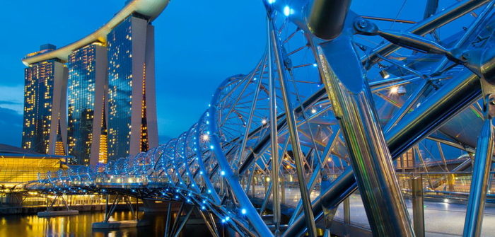 Над возведением моста трудились архитекторы известных мировых компаний Архитектс 61 (Сингапур), Кокс Архитектура (Австралия), Аруп (совместная компания специалистов со всего мира) — совместный проект которых был признан лучшим из 36 других предложений. На строительство моста было потрачено почти 83 миллиона долларов, что позволило создать уникальный по технологическим характеристикам объект. Общая площадь объекта составила около 1400 квадратных метров, при весе 1700 тонн.
