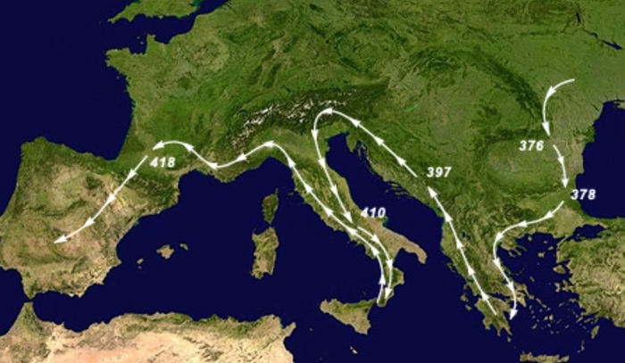 Вестготы пытались воевать с империей ранее, но пик их могущества пришелся на конец IV века. Потом они долго странствовали по римским землям от Дуная до Испании и этот переход еще больше их ослабил. Участие в борьбе Иовина и Гонория за римский престол только добавило проблем – римский полководец Констанций в 414 году устроил им торговую блокаду, которая вызывала голод. И он же через несколько лет фактически направил их в земли Аквитании, и хоть вестготы не возражали, но инициатором выступал Рим, а не они.