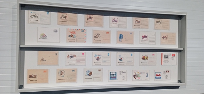 В нашем музее множество экспонатов связанных с миром мотоциклов. Литература, вымпелы, каски, краги, значки, медали, документы, открытки, марки, спичечные этикетки, кепсы и много еще чего. Более 1000 экспонатов, а сколько еще в запасниках.
