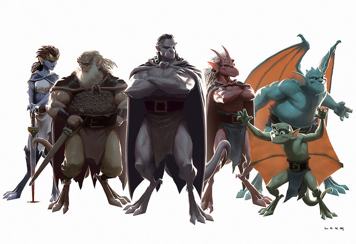 С зелёными волосами - спас от хулиганов. С синими - его учитель по магии. С красными - его ученица, обучает её магии. Сам стоит в центре с посохом на котором присутствует не хилый набалдашник:)