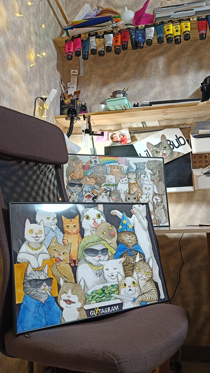 Я могу нарисовать твоего котика на холсте магните. Повесишь на холодильник или подаришь кому-то. Хорошо же?