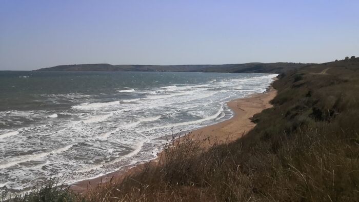 За Курортным располагаются Генеральские пляжи - цель моей завтрашней поездки. Вообще я планировал ставить палатку, но с таким сильным ветром я ещё подумаю, надо ли тут останавливаться, либо закрыть уже тему с Азовским морем и перебраться на ЮБК.