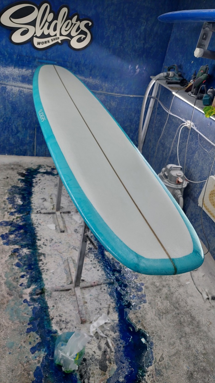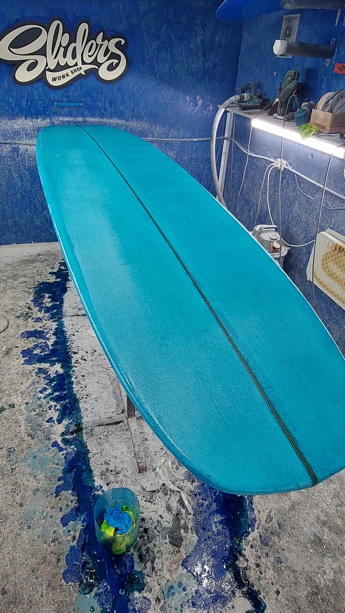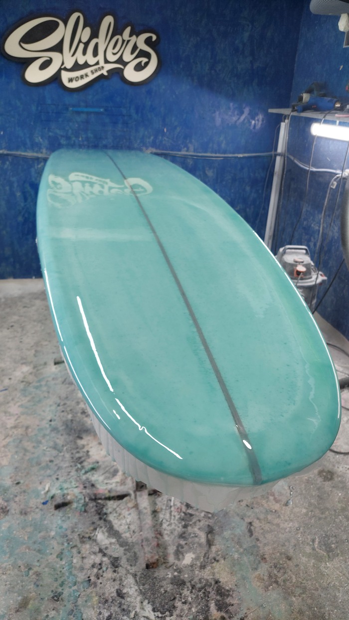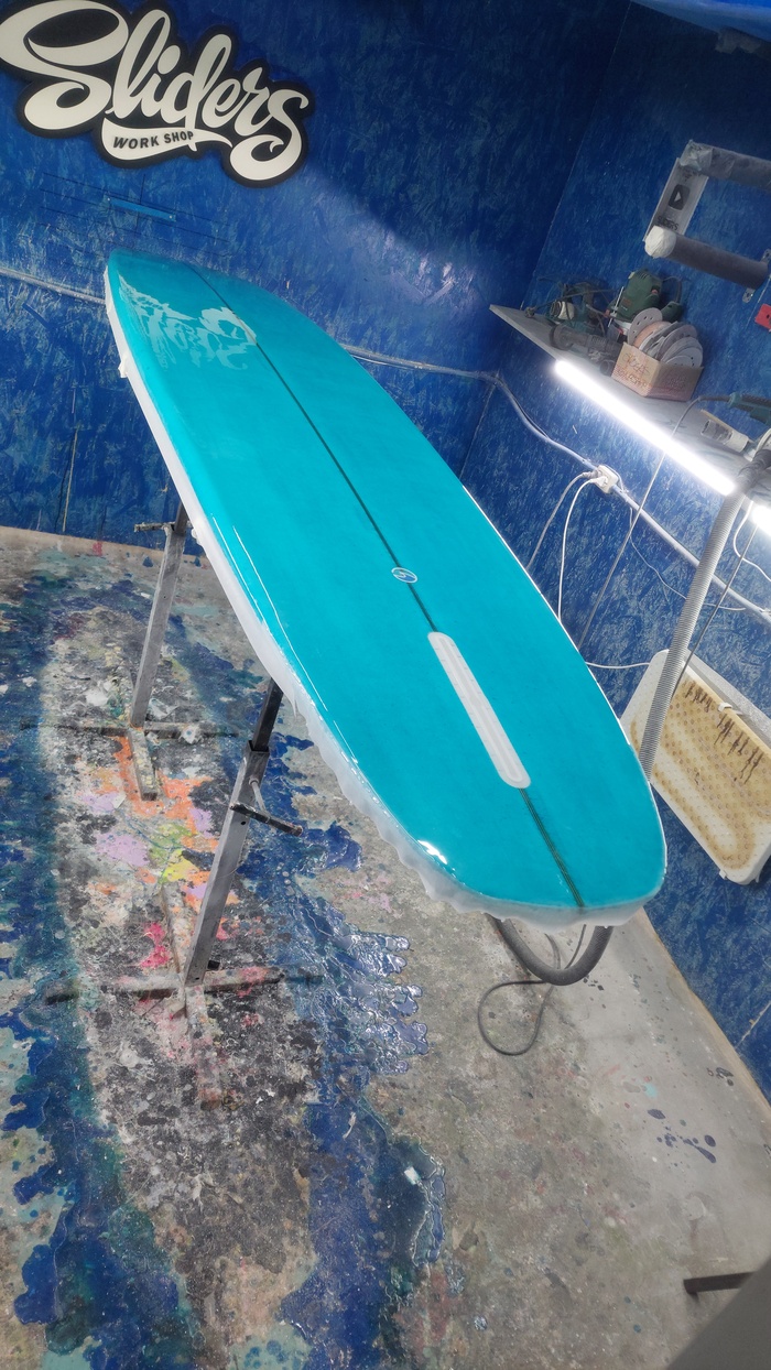 Из особенностей этой доски, цвет с флуоресцентным пигментом, прозрачная работы выполненная смолой, рисунок был выбран заказчиком и расположен под слоем смолы. Усиления плавниковой системы и рейлов.