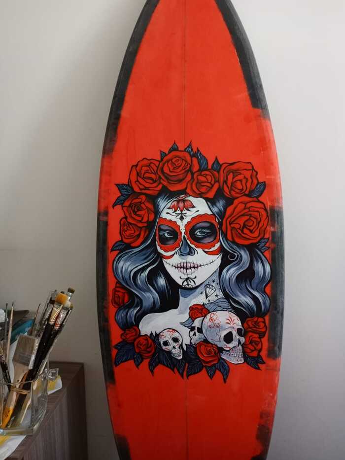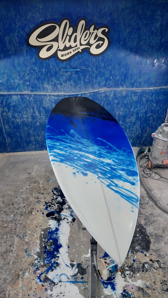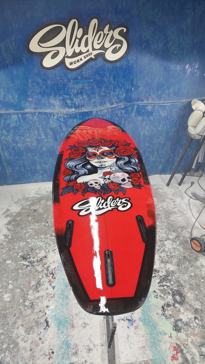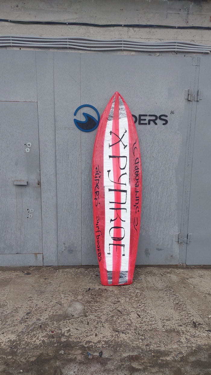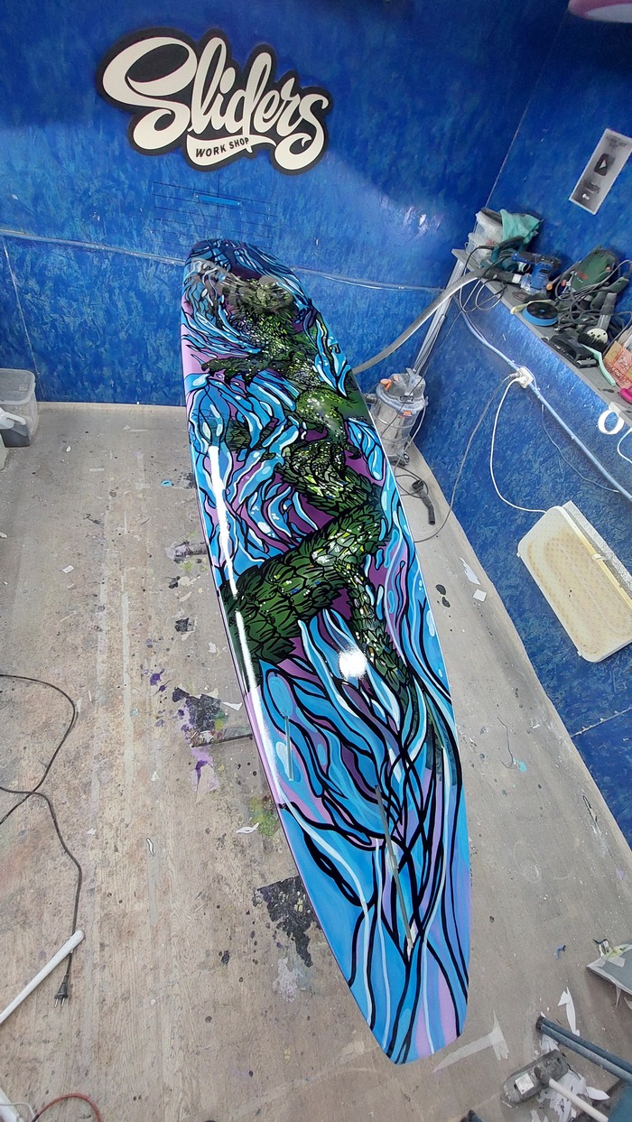 В начале апреля сдал доску с специальным мягким покрытием soft-top и суперской аэрографией дракона.