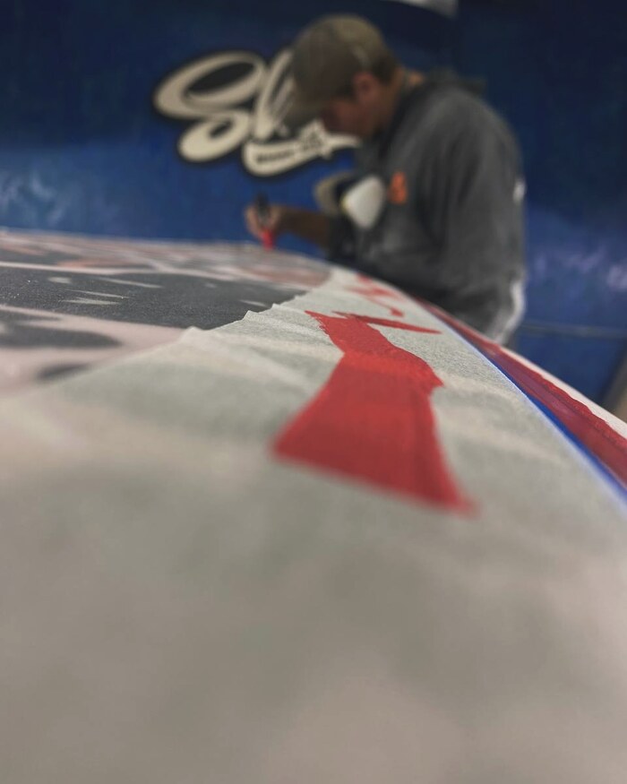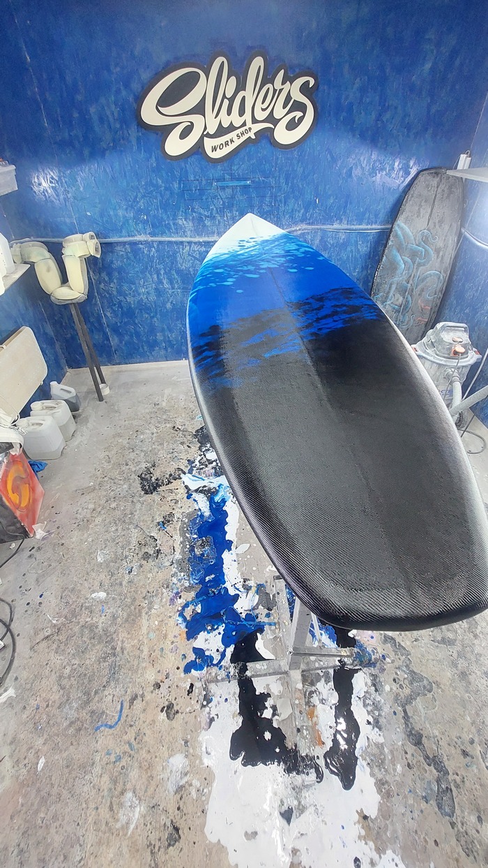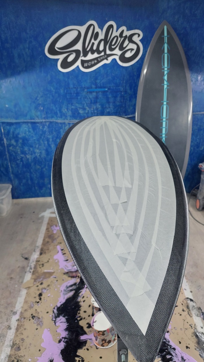 Прилетает мне недели 3 назад запрос на изготовление доски для серфинга на искусственной волне. Чёрная с графикой. За вечер набросал референсы и обговорили характеристики, и в тот же вечер прилетает предоплата 50%. Неплохо, подумал я. Обычно клиент долго думает и размышляет о высоком и важном. Ок, стартуем!