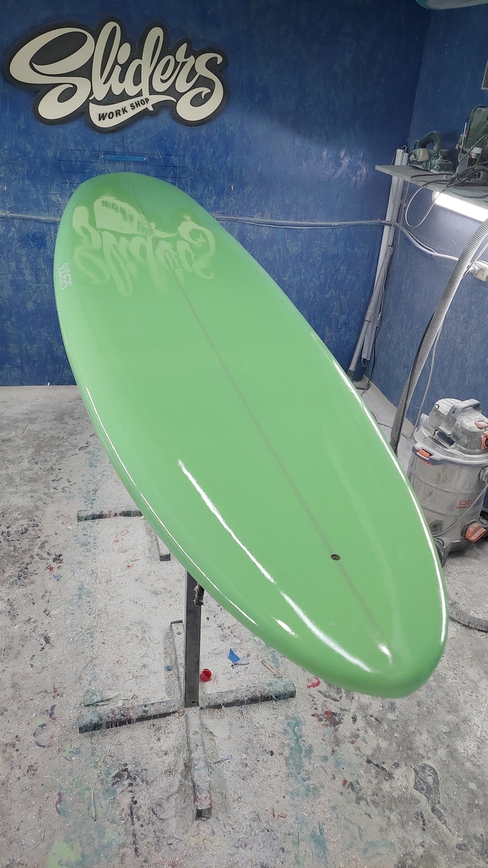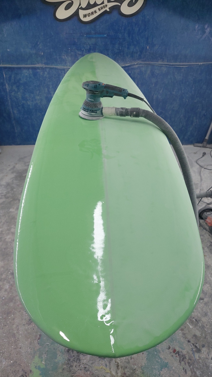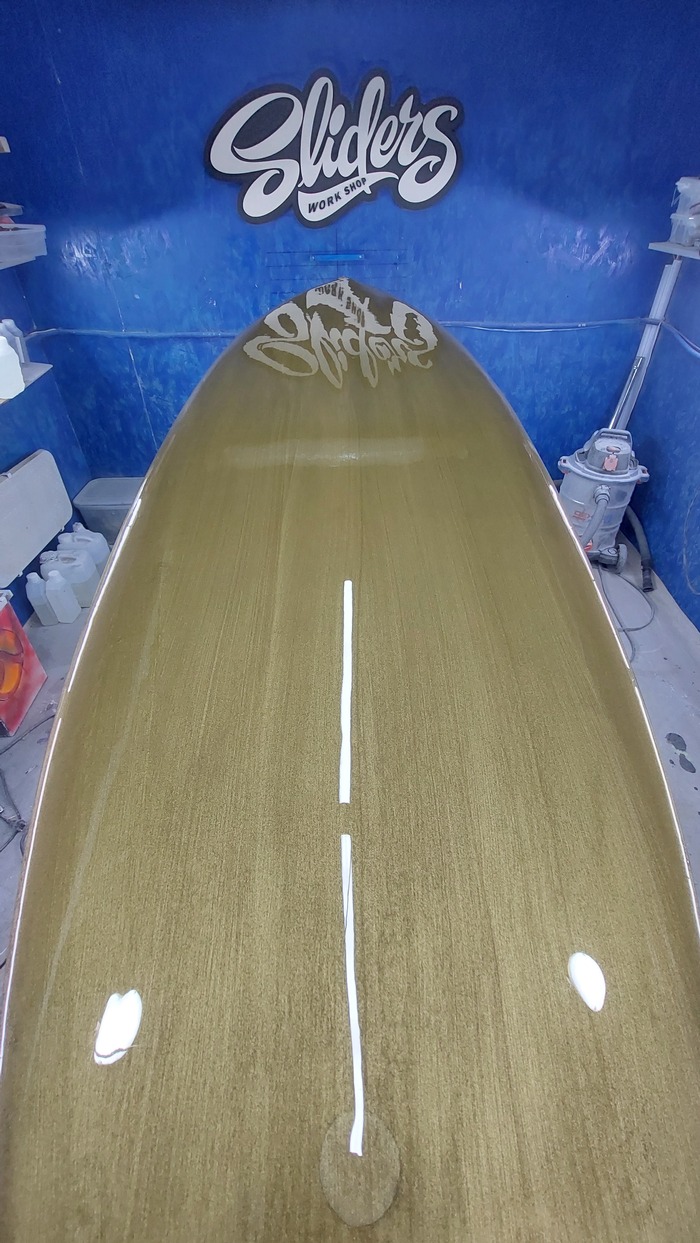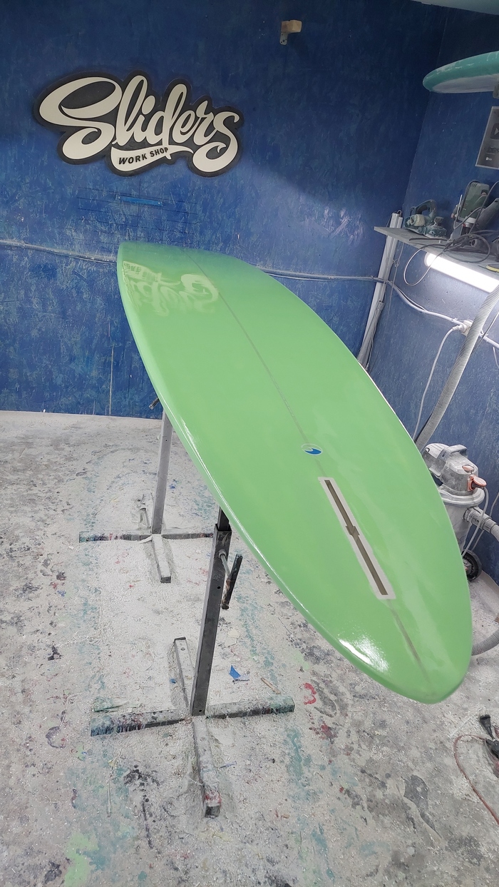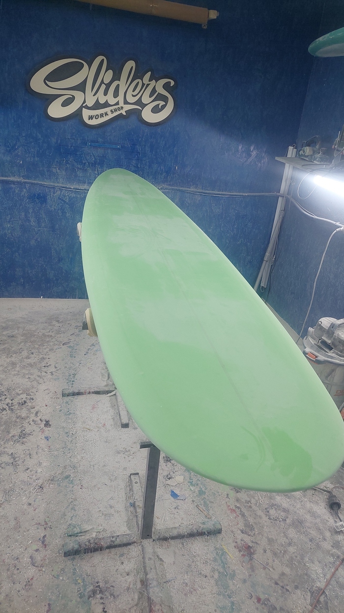 Основное с чем сталкивается шейпер(мастер), это более внимательная и чистая обработка пенопласта, т.к. любой дефект будет сильно виден после армирования смолой и стеклотканью. Прозрачность компазита вскрывает все дефекты шейпа (форм).