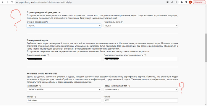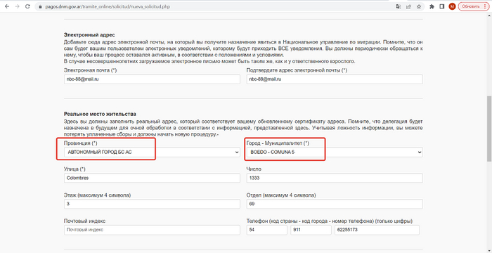 При выборе провинции есть Буэнос Айрес и Автономный город БС АС, Так вот, нужен 2й вариант, муниципалитет указывается по месту жительства.
