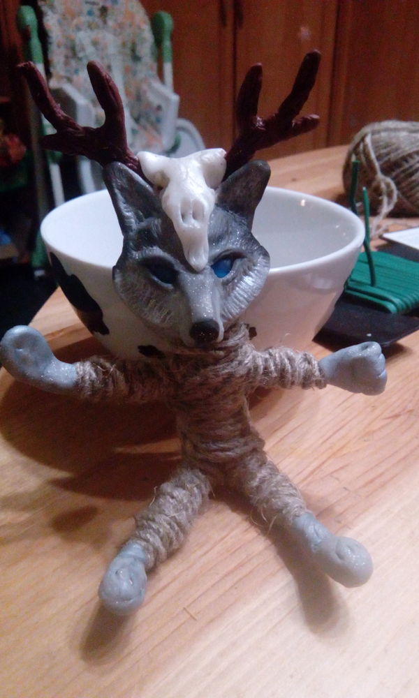 Мое первое произведение в смешанной технике. Каркас из проволоки, не придумав ничего лучше, я попросту обмотала джутовым шпагатом. Мне нравится, как он пахнет))