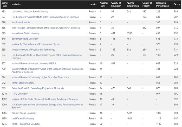 МГУ занял 193-е место, поднявшись на 29 пунктов. Московский государственный университет стал единственным российским вузом, вошедшим в топ-200. Возглавляет мировой рейтинг вузов девятый год подряд Гарвардский университет. В тройке также Массачусетский технологический институт и Стэнфордский университет.
