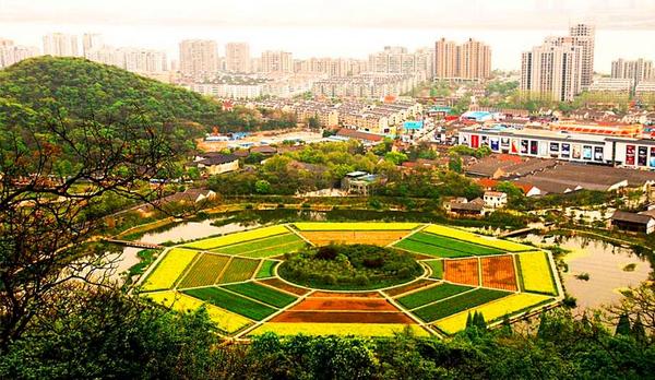 Китай. На снимках изображено поле в виде восьми триграмм, расположенное в столице китайской провинции Чжэцзян — Ханчжоу. С наступлением осени каждая из геометрических фигур, в зависимости от выращиваемой культуры, окрашивается определенным образом.