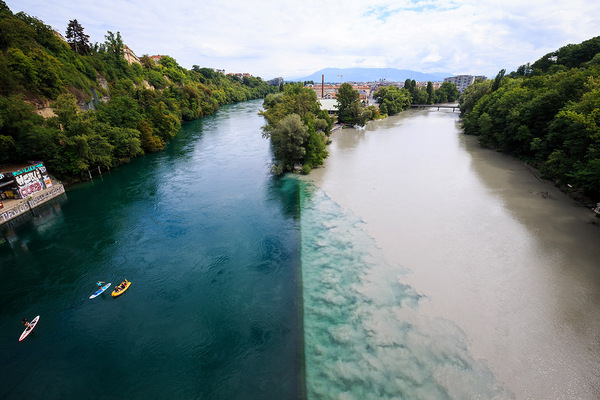 Слияние рек Рона и Арв — уникальное природное явление, которое можно наблюдать в районе La Jonction на западе Женевы.
