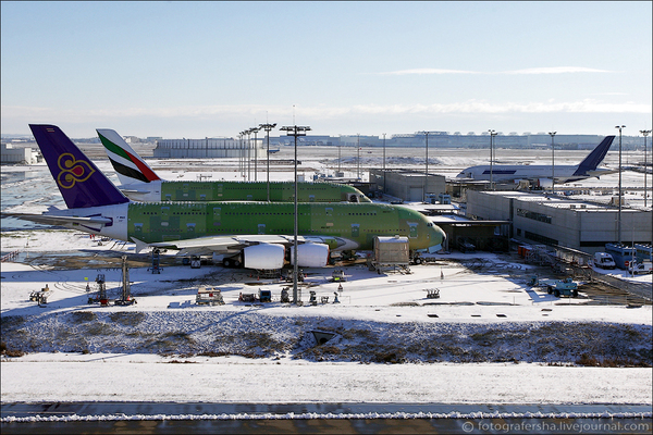 Как красят самый большой серийно выпускающийся самолёт в мире. Airbus А-380 в Гамбурге.