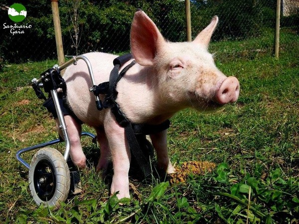 Ее мать, которую содержали в жестоких условиях, случайно упала на нее, и в результате травмы позвоночника Патриция оказалась парализованной. Ее собирались убить, но заповедник решил приютить поросенка. Патрицию спасли от жизни на ферме и дали ей специальную коляску, которая позволила ей двигаться. На фото ниже запечатлена Патриция, когда ее только доставили в заповедник. Теперь она может ходить и даже бегать с другими животными.