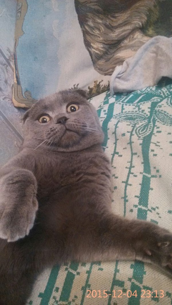14. Кот-очкомёт. Боится всего и вся. Шорохи вызывают окаменение, резкие звуки коллапс, при резких движениях кот просто просачивается сквозь пол и исчезает. Самые страшные кошмары котика-очкомёта- это купание, ветеринар и поездка на дачу. Спит беспокойно и в полглаза. Ест тоже беспокойно, и оборачиваясь. Серит по ночам, в абсолютной тишине, под бой часов о третьем часу ночи.