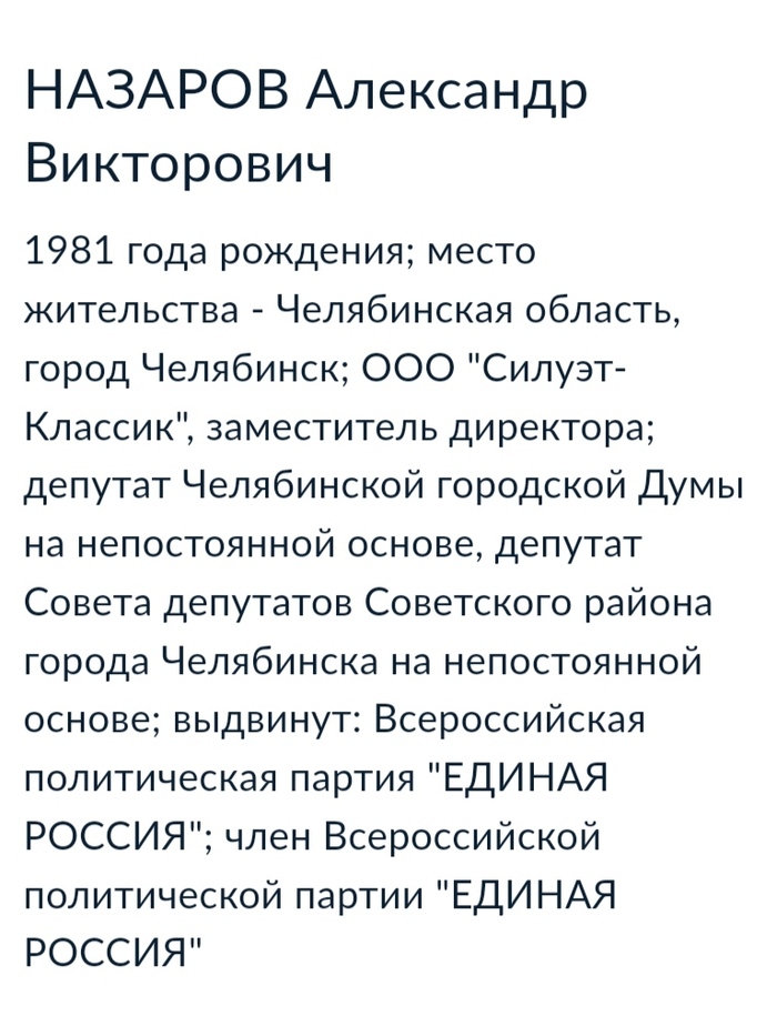 В следующем списке тоже из 4-х в губернаторы Челябинской области один действующий, неизвестный мне татарин (ничего не имею против татар, просто считаю что в Татарстане упомянутый кандидат уместнее, чем в нашей области), либерал с переферии и самозанятый москвич 🤨