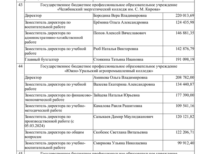 Поискав по просторам интернета нашлась и другая информация по зарплатам учебных заведений. Например, согласно документам с сайта Министерства образования и науки Челябинской области руководители СПО зарабатывают поскромнее ВУЗовских, но оплата труда глав.буха наравне с директором – вопросики имеются: