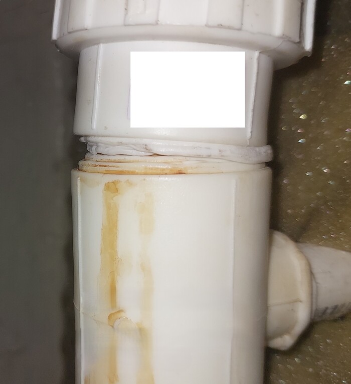 5-й, верхний этаж хрущевки. Была течь по резьбе муфты полипропиленовой трубы стояка и заглушки.