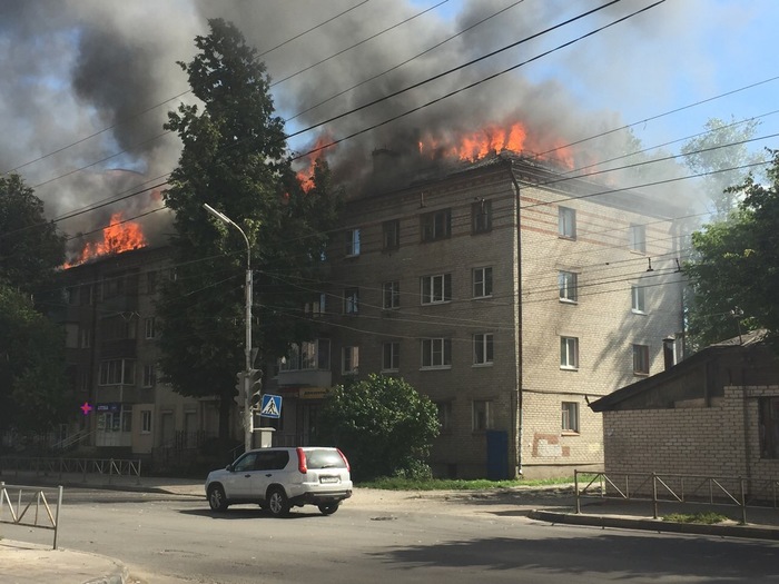 Пожар произошел 22 июня, днем. Загорелась (и благополучно сгорела) крыша жилого четерехэтажного дома. Дом мой. Хочу поделиться впечатлениями.