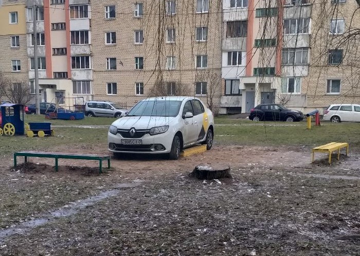 Судя по комментариям, всю ночь играла музыка, а потом он стал кататься по двору, так и застрял.