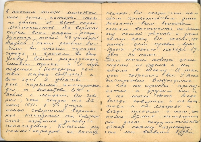 10 Gogolek37 А. В. Кораблёв "Воспоминания прожитым дням войны 1941-1945" Часть 1 1 год назад Наткнулся на тетрадку, которую мой прадед вёл, ещё в 1978 году. В ней описывается жизнь в период Великой Отечественной войны. Если будет интересно, то буду выкладывать части мумеаров в следующих постах Показать полностью 9 [моё] Длиннопост Великая Отечественная война Прадед Военные мемуары Ещё 0