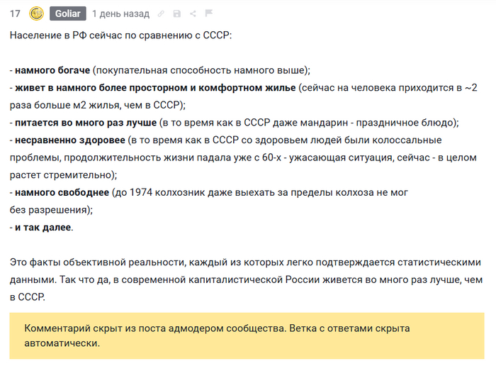 Кстати, заметили? Они перестали говорить про "лудшие в мире савецкие абразавание и медицину". Видимо, после многократной демонстрации, что с этим всем было все крайне плохо, особенно с медициной (просто лютый ужас и кошмар), они эти темы решили больше не трогать.